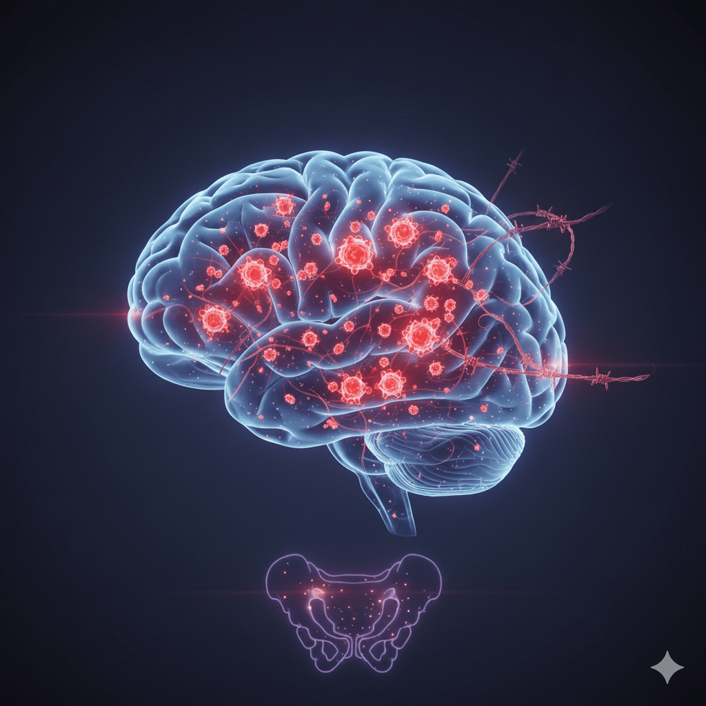 Endometriosis trains the nervous system since chronic pain rewires multiple circuits in the brain at once. What this tells us is that the issue is no longer limited to being just a pelvic problem, but it leads to a central nervous system condition with “sensory, emotional, cognitive and behavioral” factors (Yang et al., 2019). The key driver here is central sensitization. The ongoing inflammation intensifies glutamate signaling through the NMDA receptors. Therefore, calcium flows, synapses change, and the dorsal horn neurons are more excitable. In addition, the signals get amplified, the thresholds drop and what used to be tolerable now hurts (Yang et al., 2019). Endometriosis shows this very clearly. Pain can even persist after lesion removal and often fails to match the lesion load, which points beyond the pelvis and reaches the central mechanisms that keep the pain loud (Bashir et al., 2023).