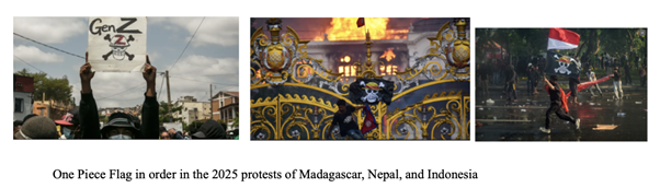 In conclusion, the use of the One Piece Jolly Roger flag shows how important culture jamming is becoming as political expressions in contemporary protests. Pop culture symbols now carry the power to unite people under shared ideals. Through acts of culture jamming, protesters are exposed to familiar icons that critique authority and expose social injustices in ways that are both creative and hard to censor. The One Piece flag, recontextualized from fiction to reality, shows how stories and symbols can transcend borders. Ultimately, the use of culture jamming has taught us that resistance does not always emerge through confrontation alone. Resistance can also be found in culture through humour and imagination. Thus, the One Piece flag’s presence in 2025 demonstrations shows how popular media can be culture jammed into subtle yet potent tools for expressing political discontent.